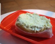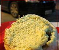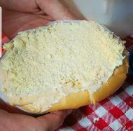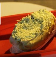 ngredientes: Pão maior, Duas salsichas de Soja, molho de panela, repolho, vinagrete, milho, ervilha, catchup, maionese, mostarda, queijo e batata palha.