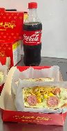 Ex: 2 Salsichas + 1 Calabresa ou 2 Calabresa + 1 Salsicha pão maior, molho de panela, repolho, vinagrete, milho, ervilha, catchup, maionese, mostarda, queijo e batata palha.